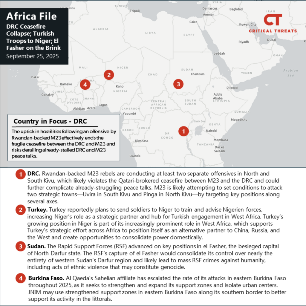 - Figure 1. DRC Ceasefire Collapse; Turkish Troops to Niger; El Fasher on the Brink: Africa File, September 25, 2025
