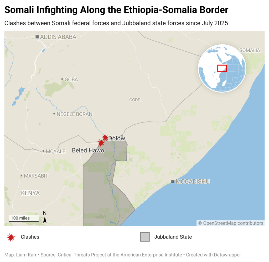 The SFG has decided to create a rival administration in Jubbaland.[xxxiii] Madobe and Somali president Hassan Sheikh Mohamud met in early October for the first time since late 2024 but failed to reach an agreement.[xxxiv] Madobe reportedly refused to support the one-person, one-vote election system, while Mohamud reportedly refused to recognize the Jubbaland election results.[xxxv] The National Intelligence and Security Agency’s commander in Gedo region announced on October 8 that the SFG will create a new administration in Garbaharey, Gedo region, reportedly with the support of Gedo region clan elders and security officials.[xxxvi] Gedo region has regularly been at odds with the Jubbaland state government based in Kismayo due to clan-based, local-central political tensions similar to those in the SFG-Jubbaland dispute.[xxxvii] SFG- and Jubbaland-backed forces already clashed in Gedo several times in July 2025.[xxxviii]