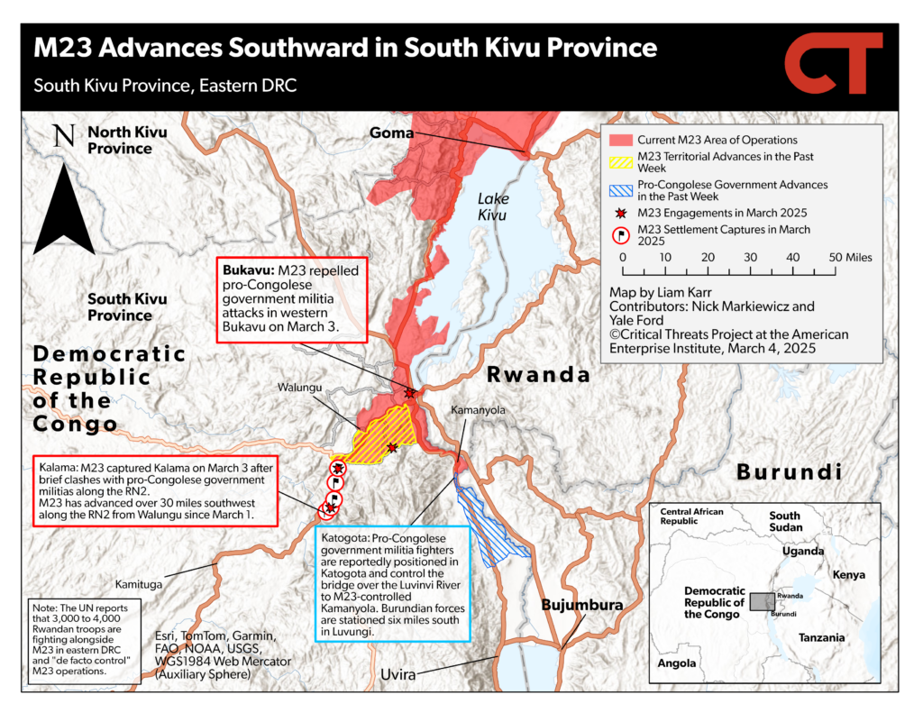 Figure 4. M23 Advances Southward in South Kivu Province (March 2025)