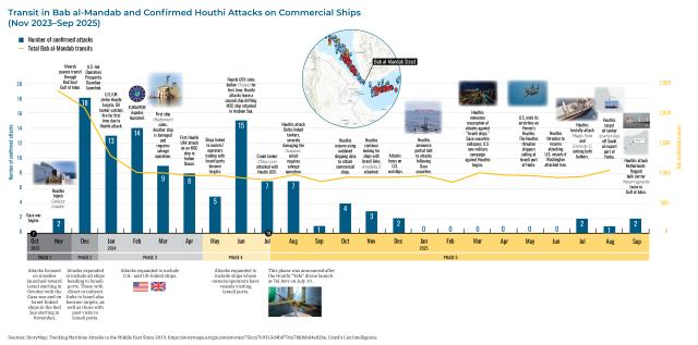 It has been almost two years since the Houthis set off their campaign against freedom of navigation in the Red Sea on November 19, 2023. Overall vessel transits via the narrow Bab al-Mandab Strait remain below their early 2023 levels, though some shippers returned to that route earlier this year in what industry sources attribute to “risk normalization.”
