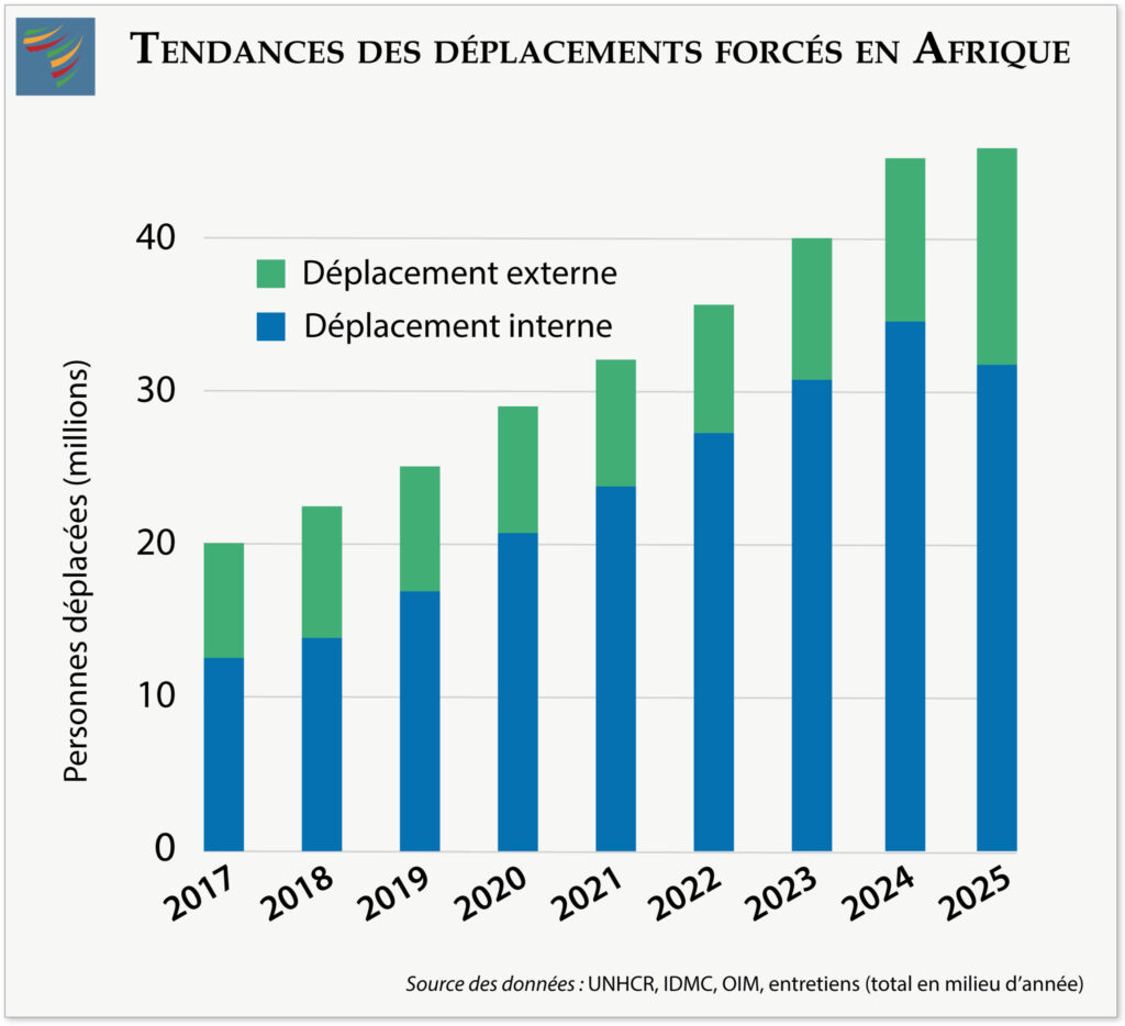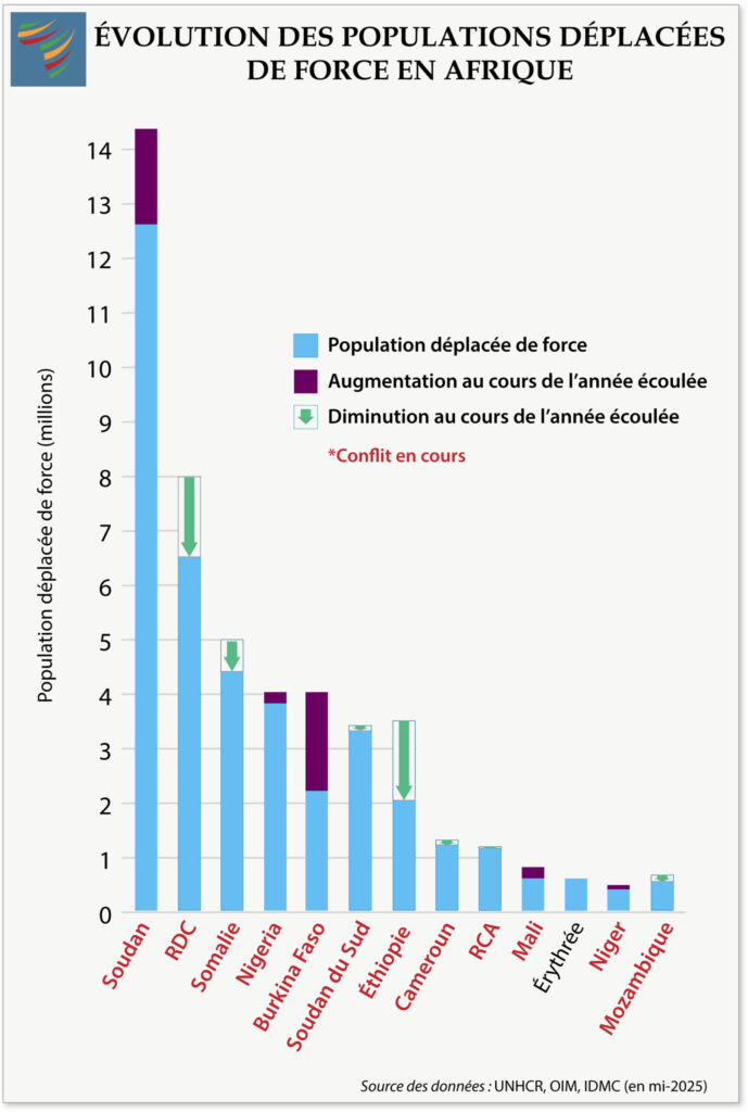 9 pays africains ont signalé plus d’un million de personnes déplacées au cours de chacune des trois dernières années, ce qui met en évidence l’instabilité persistante des conflits en Afrique – pour ces pays et leurs régions.