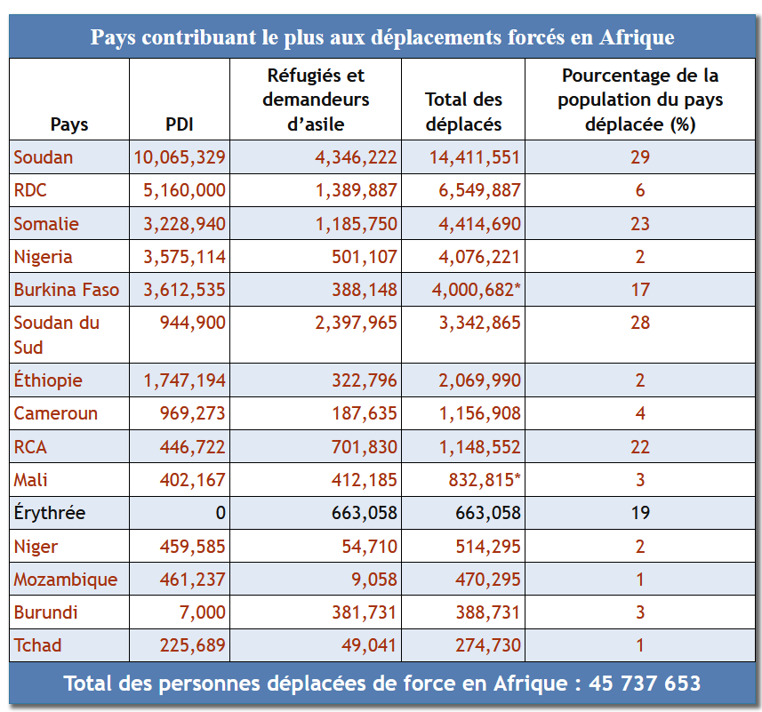 La population soudanaise déplacée de force représente 32 % du total continental.