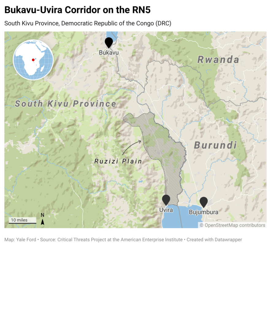 M23 likely wants to retain the defensive advantages of capturing Uvira despite withdrawing. CTP assessed when Uvira fell that M23’s control of the city augmented M23’s political and military leverage, as it severely constrained Burundi’s ability to provide crucial military support to the Congolese army (FARDC) and cut off the FARDC’s main supply routes in South Kivu.[21] An M23 official told Reuters on December 16 that M23 would agree to withdraw “three miles” from Uvira to establish a buffer zone, preventing the redeployment of pro-Congolese government forces and effectively “demilitarizing” Uvira.[22] Nangaa did not specify the timetable or territorial extent of M23’s pullback, meaning that the group could keep Uvira encircled with its positions to the south in Fizi district and west in the highlands above Uvira, while retaining control of areas that it captured during the offensive, namely the RN5—a major roadway atop the Ruzizi Plain—by withdrawing only from Uvira center. M23 reopened the RN5 to civilian traffic between Bukavu and Uvira on December 17 after 10 months of no access.[23]
