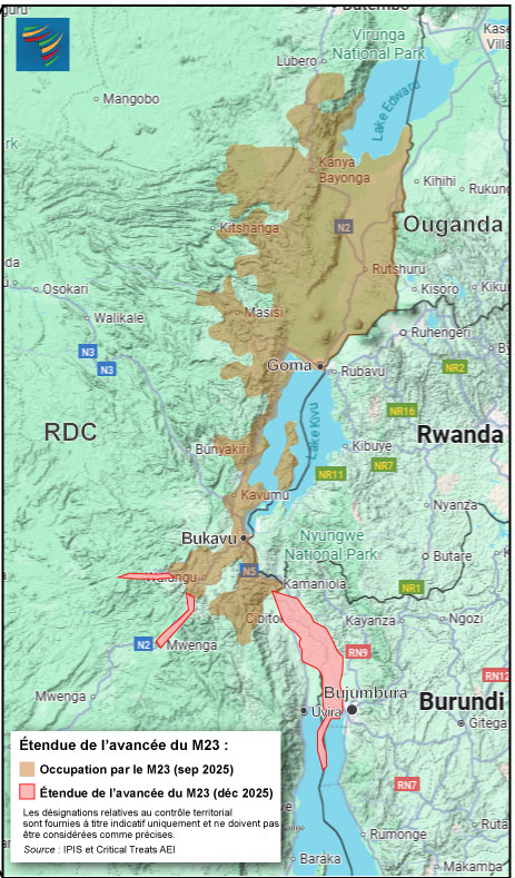 Outre Goma (2 millions d’habitants), le M23 a pris le contrôle de Bukavu, la capitale du Sud-Kivu (1,3 million d’habitants), et en décembre, il a poursuivi son avancée vers le sud pour s’emparer de la ville d’Uvira (650 000 habitants). Plus de 2,5 millions de personnes ont été déplacées à la suite des offensives du M23. Parmi elles, 200 000 civils congolais ont été déplacés en raison de l’avancée vers Uvira.