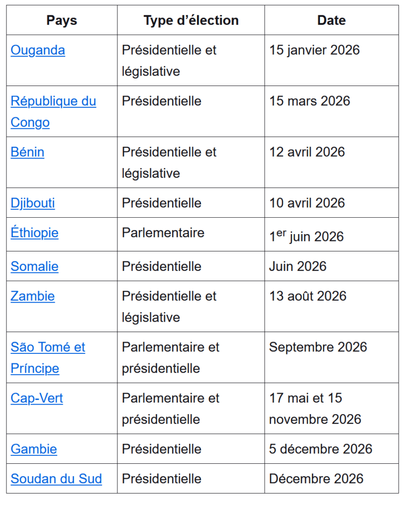 Par ailleurs, cinq pays organisent des élections législatives cette année : le Bénin (12 janvier), le Cameroun (mai), l’Algérie (juin), le Maroc (septembre) et la Guinée (2026).