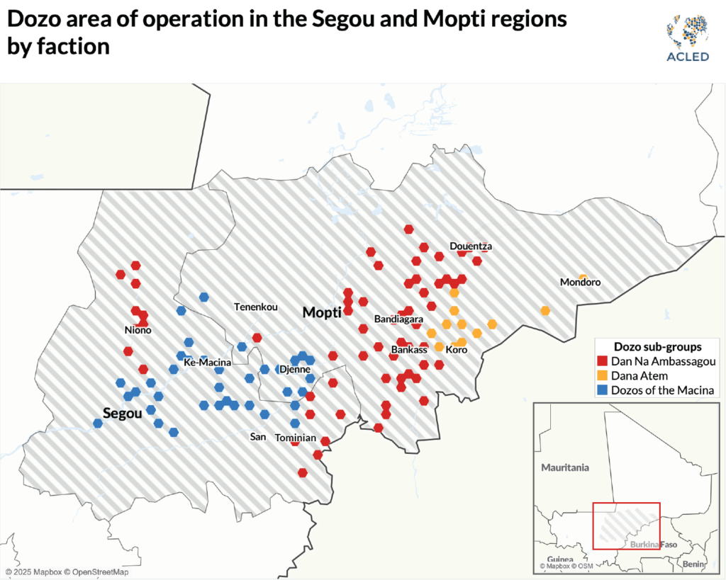 This report draws on ACLED data, field research, and interviews with local sources to examine the structure and operation of Dozo groups and their impact on the broader conflict environment. It focuses on three main networks: the Dozos of Macina, the Dan Na Ambassagou movement, and the Dan Na Ambassagou splinter group Dana Atem. Through tracing their evolution, this report provides insights into how Dozo engagement with civilian populations and jihadist groups has exacerbated intercommunal tensions, fueled cycles of violence, and transformed local disputes into widespread communal warfare.